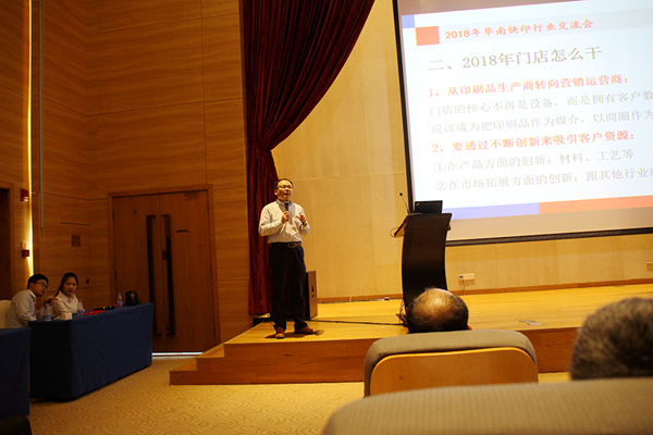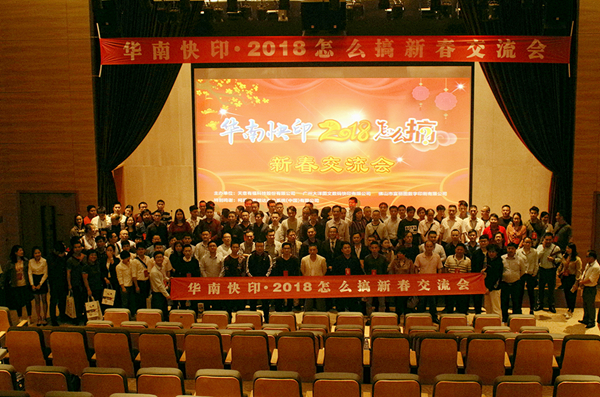2018年3月5日,由天意有福主辦、大洋圖文、富麗圖快印聯合協辦的主題為“華南快印2018怎么搞交流會”在廣州市黃埔區保利假日酒店報告廳隆重舉行。天意有福副總經理董祖明、王亦兵、吳楊文,富麗圖快印總經理束永春,柯尼卡美能達梁曉麟,大洋圖文總經理陳育明,悟空快印劉敏,六九快印曾中輝,點源科技總經理何根山等13位嘉賓出席了此次會議。下午13點30分,柯尼卡美能達梁曉麟先生致辭,宣布會議開始,近兩百家快印企業代表針對行業趨勢、互聯網技術應用以及未來發展方向等話題,結合本公司經營策略展開了精彩的行業對話。