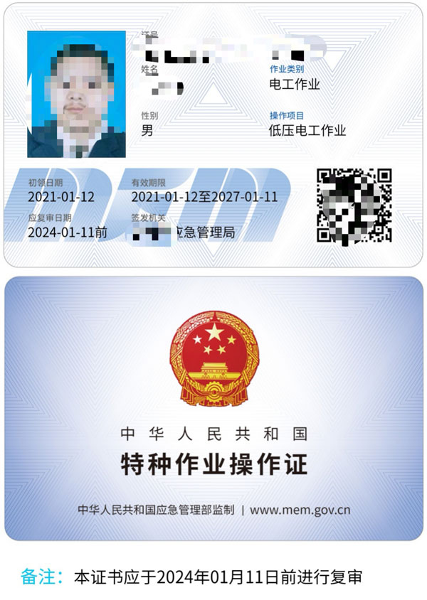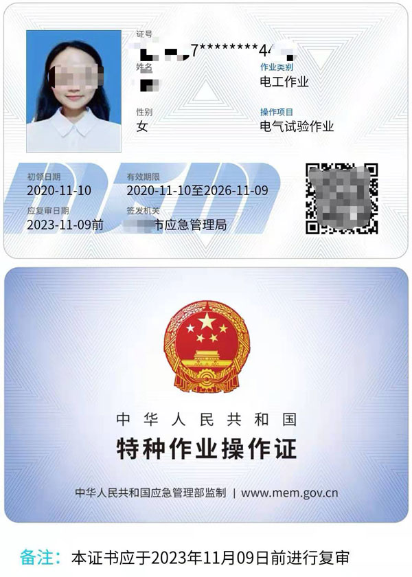 從2020年3月份起,高壓電工證書(shū)以新版的證書(shū)統(tǒng)一印制,分為電子證和實(shí)體證兩種類(lèi)型,證書(shū)由相關(guān)部門(mén)頒發(fā),有效期是6年,每3年復(fù)審一次。