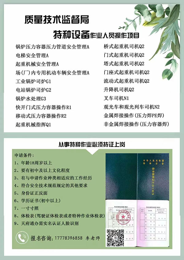 叉車證:其正式證書名稱為《特種設備作業人員證》,發證單位為各地市質監局,作業種類為文車司機,項目為N又車有效明現為四年,在有效期滿個月,持人應申請力理復審需要考試后復審的,憑考試合格成績向考試場所所在地發部門申請復審逾期未復審或復審不合格,該書不再有效。