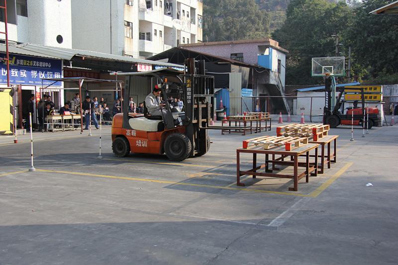 叉車駕駛員實操考試內容分兩大項,樁考和路考。樁考是使用規定的樁桿在預先設定尺寸標準的場地,按規定的行駛線路(包括規定的屬具)行駛和操作,其目的是考核學員對車輛的安全操控能力。路考是按照特定的行駛路徑進行行駛操作,其目的是考核學員掌握和運用所學實操技術,掌握交通常識及對路面的適應能力和對事件的應變處理能力。其中樁考又分成場內“8”字行駛考核和叉載“工”字行駛考核兩項,每項均采用50分制和失誤扣分的形式進行考試。路考分為“合格”或“不及格”兩種成績,由考評員按考試標準和考核對象的實際操作情況,直接確定“合格”或“不及格”(暫不執行)。